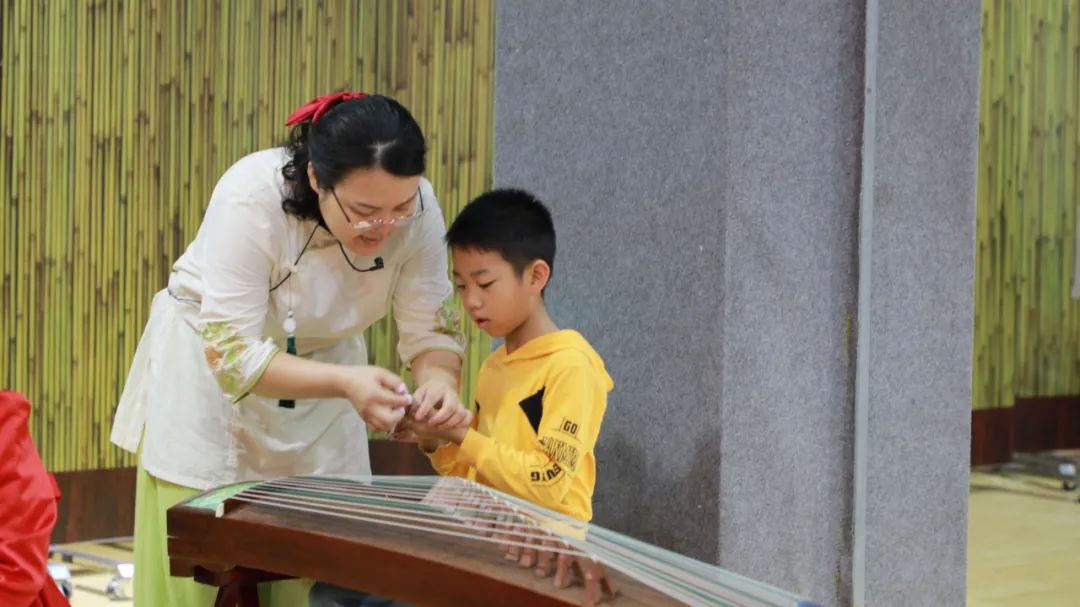 古筝课上,孩子们在认真地学着我们中国传统文化的精华,柔美纯净的音质就犹如我们祖国花朵的心灵,让整个课室充满着艺术的美感。