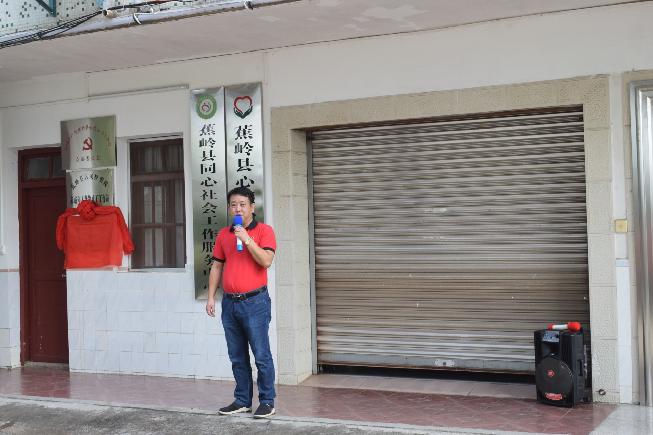 上图为蕉岭县心连心义工协会丘会长为揭幕致辞